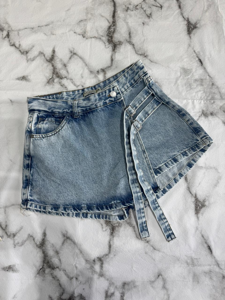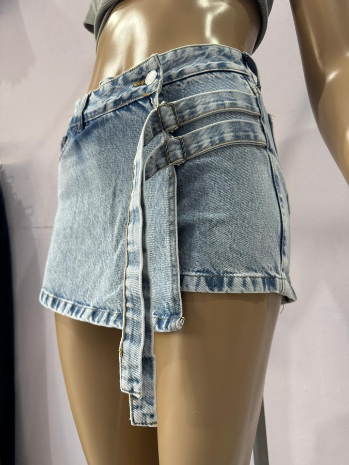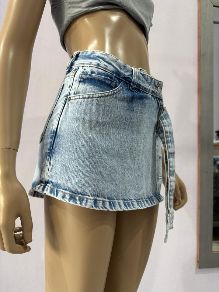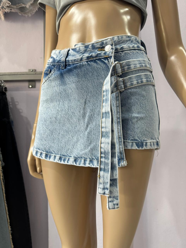 SHORT POLLERA TELA RIGIDA TIRO ALTO